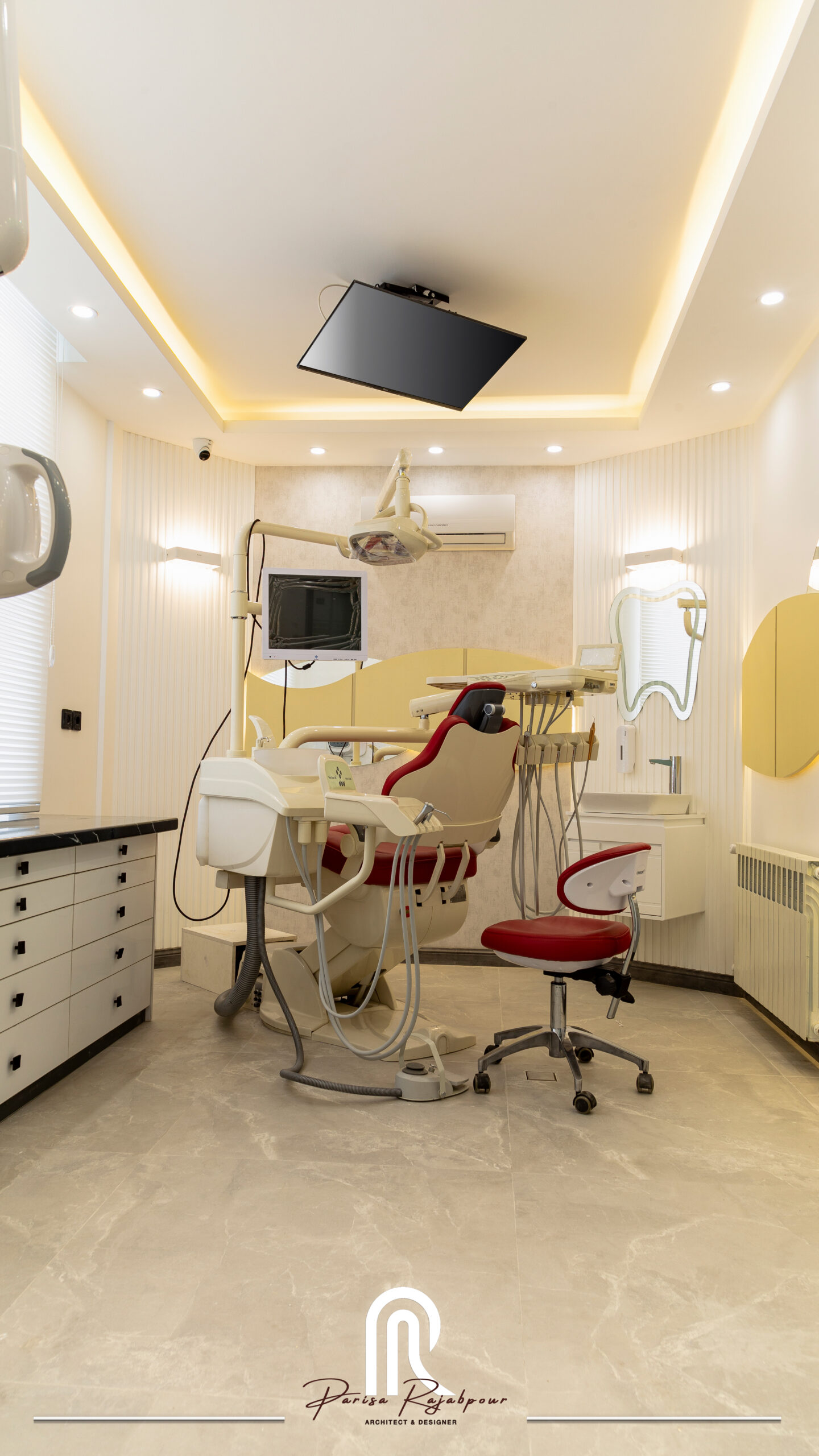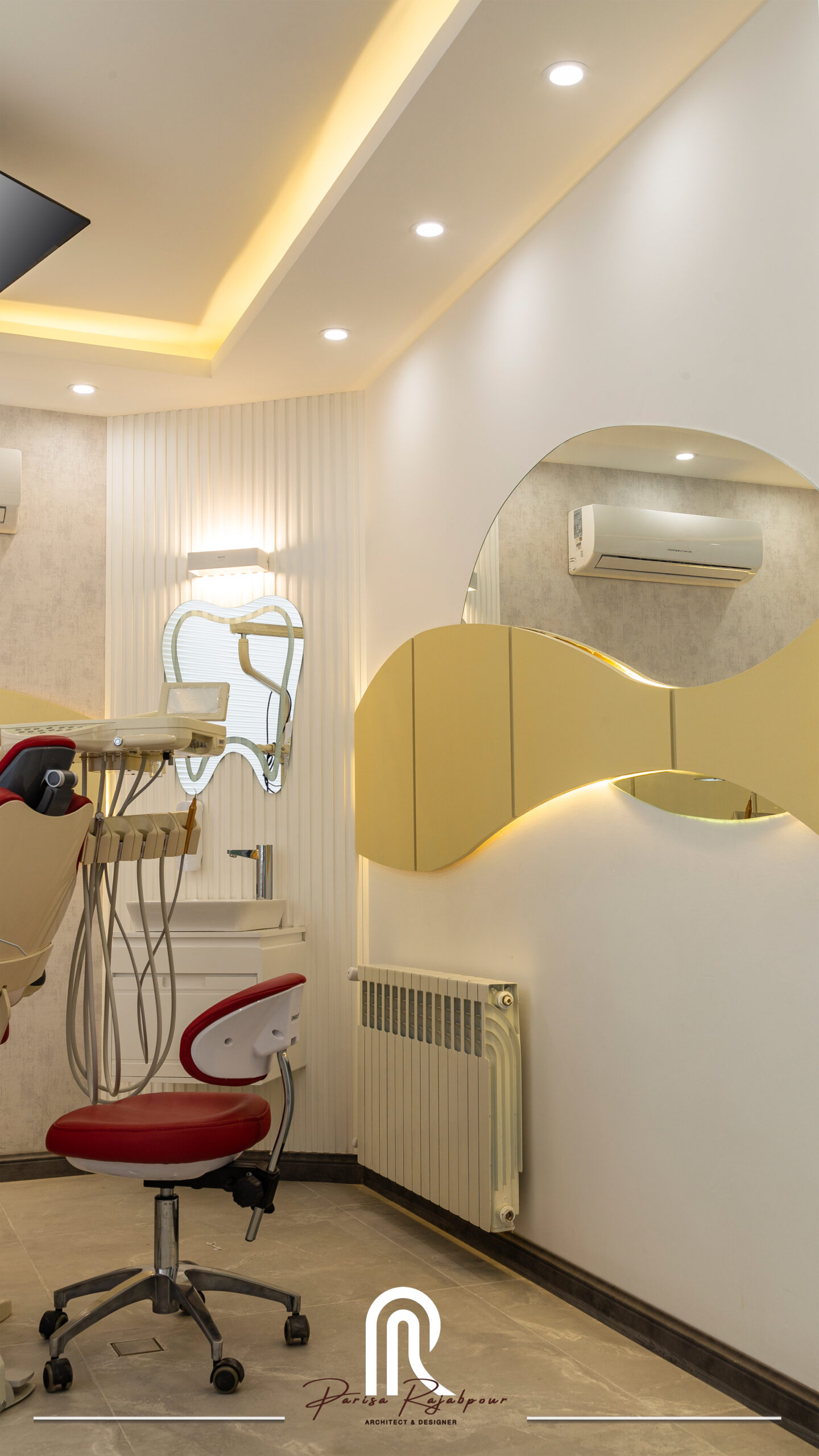 The design of this dental clinic emphasizes creating a space that not only fulfills its medical functions but also conveys a sense of calm and trust to patients. In the two main treatment rooms, a palette of light and cream tones establishes a bright and soothing atmosphere—colors that draw natural light deeper into the space while helping to ease anxiety. Soft arches and decorative mirrors add a subtle harmony to the environment, creating balanced reflections and gently breaking the monotony of plain walls.