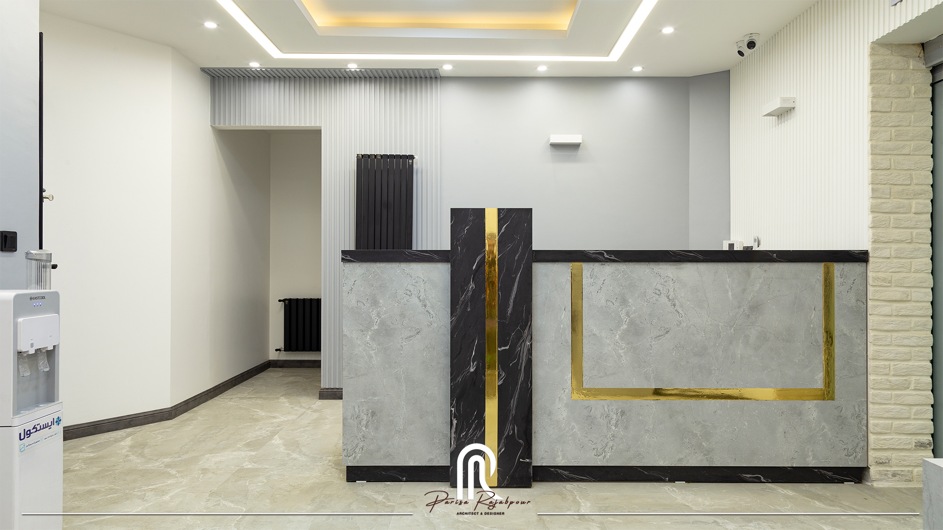 In designing the lobby and management area of this clinic, the aim was to strengthen the professional and cohesive image of the space while also creating an atmosphere that feels calm and reassuring for visitors. In the lobby, a palette of gray tones paired with black accents brings a simple, modern character to the environment—a composition that is neither overwhelming nor cold, but instead achieves a balance that feels inviting and serene. The reception counter, designed with gray and black stone, serves as a strong focal point at the entrance, leaving a lasting impression of order and precision.