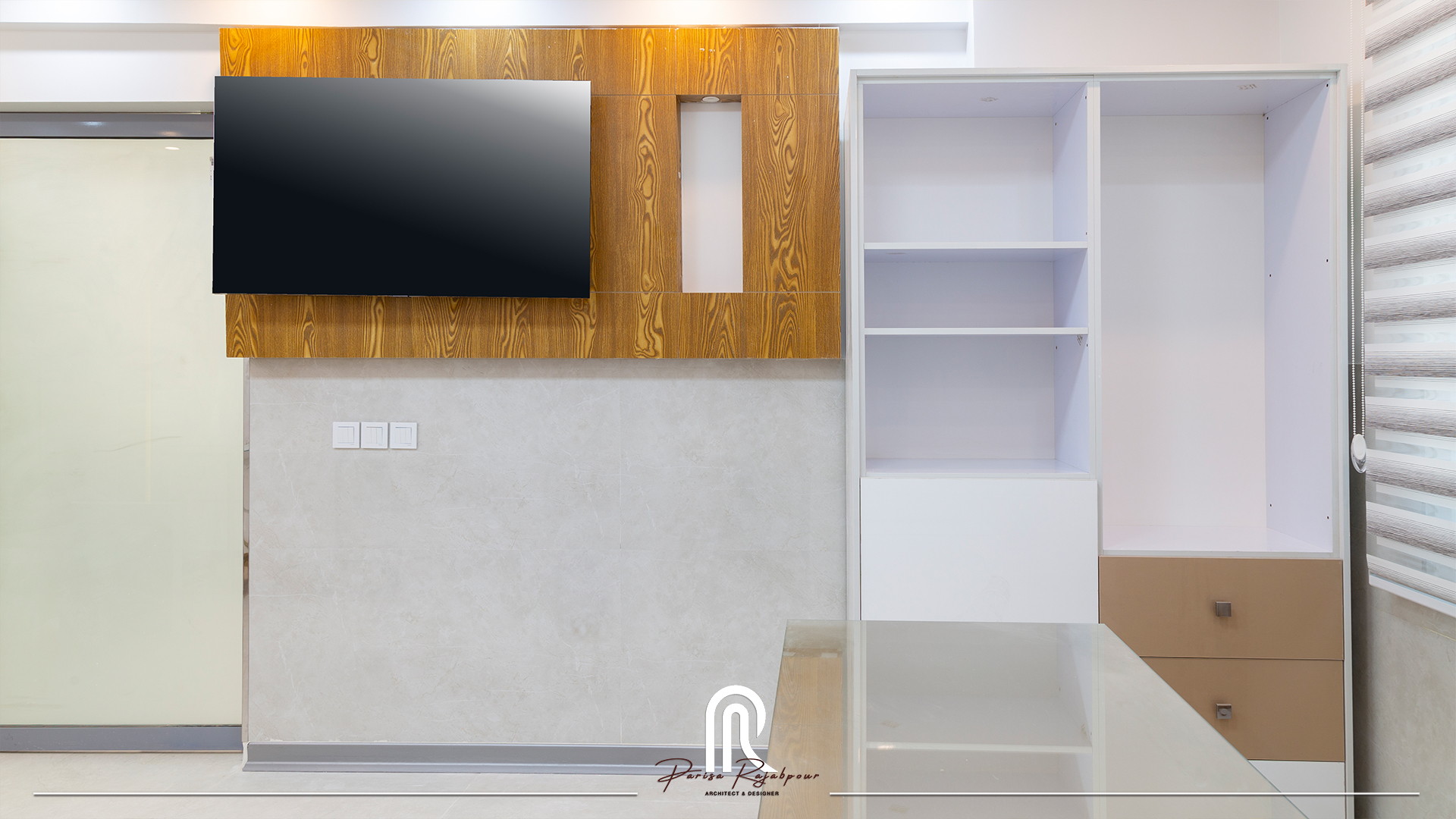 White was chosen as the main background color to enhance the simplicity and clarity of the space. To create a distinct and inviting character, a feature wall in soft lavender-purple was introduced, adding warmth and personality to the environment.