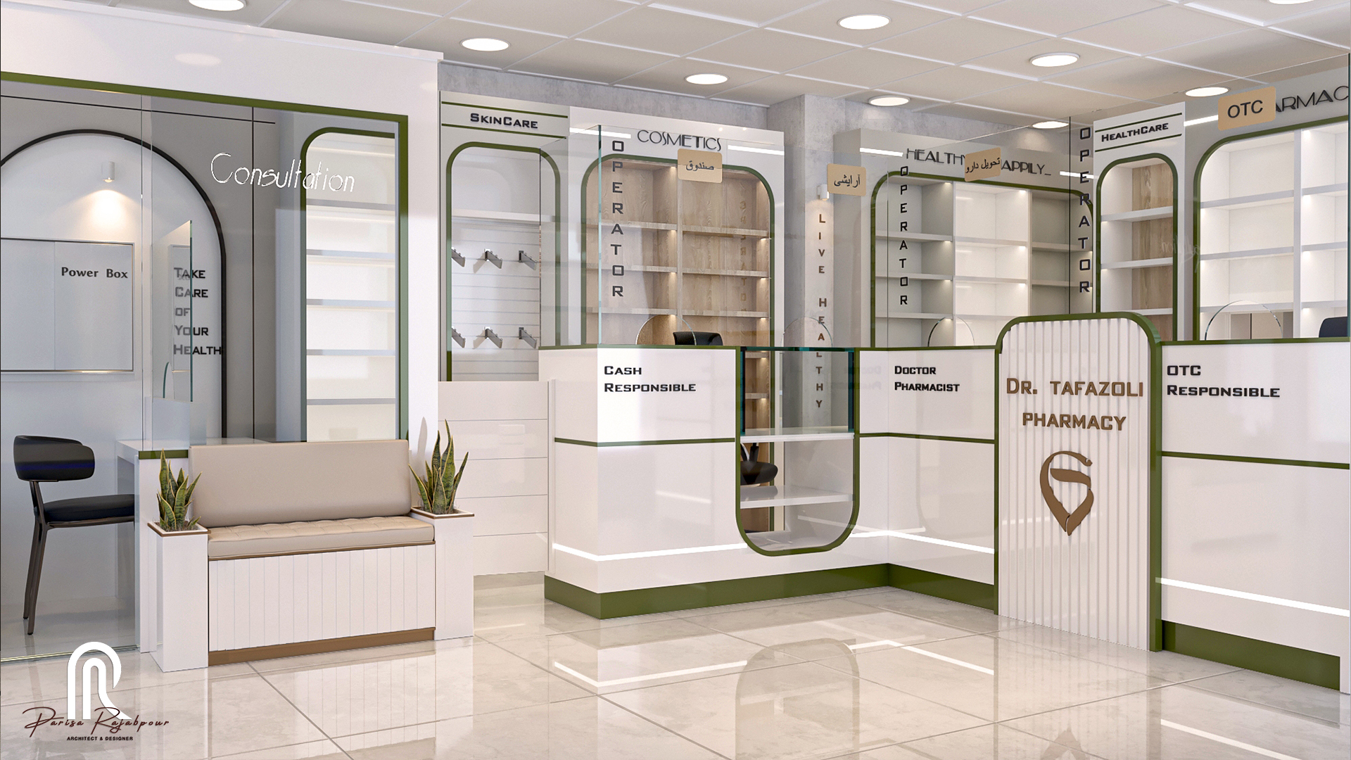 کلیت طراحی، نمایانگر داروخانهای مدرن، ساده و کارآمد است؛ با جزئیاتی که هم به بُعد زیباییشناسی توجه دارند و هم ملاحظات اقتصادی و عملکرد را در کنار هم به توازن رساندهاند. نتیجه فضایی است که نهتنها استانداردهای درمانی و الزامات عملکردی یک داروخانه را رعایت میکند، بلکه مراجعان را با حس تازگی، نظم و آرامش همراه میسازد.