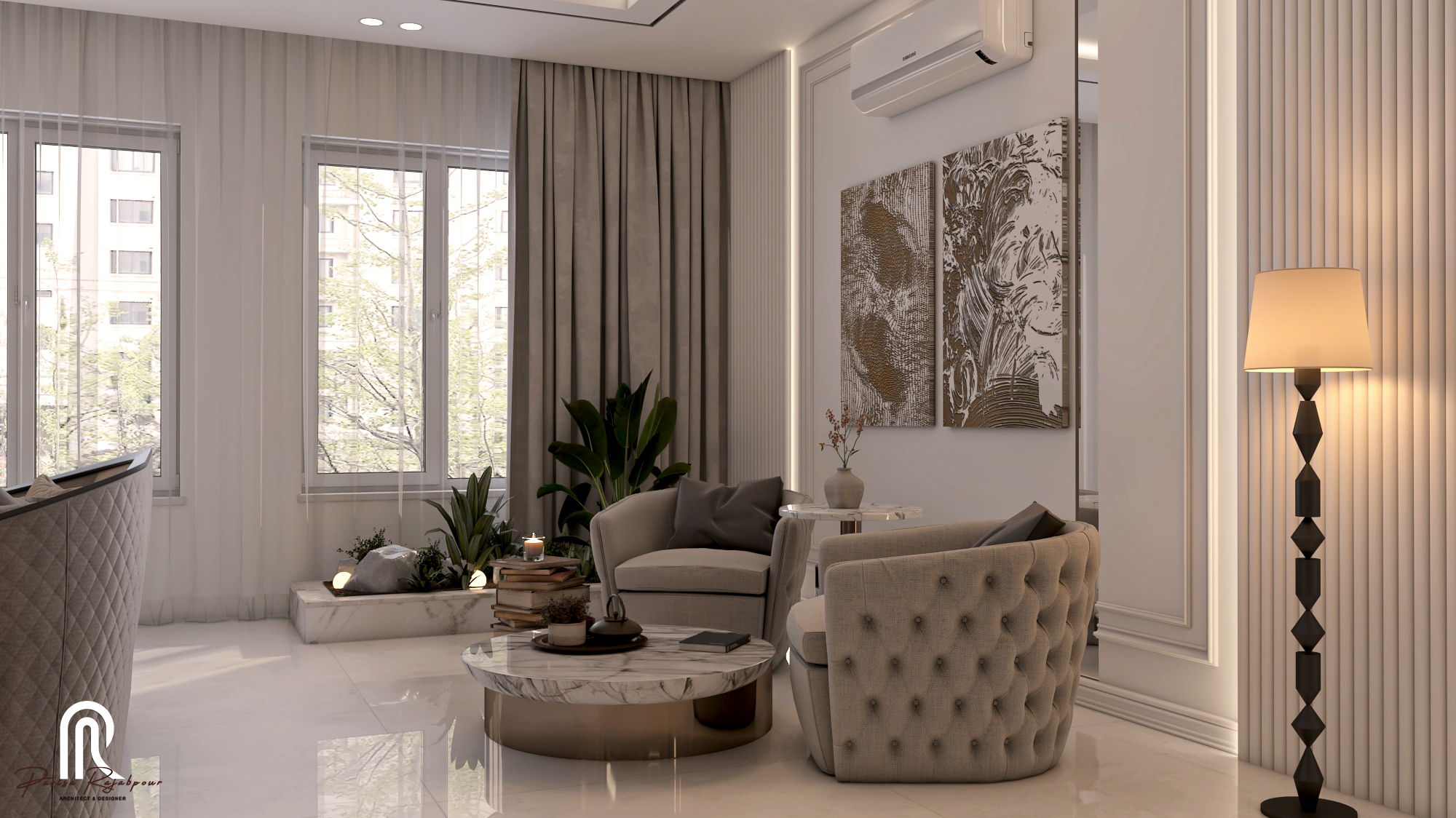 این نشیمن در نهایت صرفاً محلی برای گردهمآیی نیست؛ بلکه صحنهایست که در آن نظم نئوکلاسیک با خلاقیت معاصر پیوند خورده و فضایی ماندگار برای زندگی روزمره، آرامش و زیبایی شکل گرفته است.